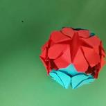 刚刚完成的花球,因为没有这么多红色的纸,就用了两个蓝色的