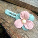 最近流行玻璃水晶钻系列发饰!同色系三瓣花做了一个!暴雨后,就好热,出门扎马尾了!