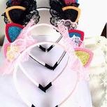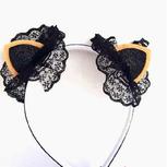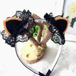 〖枫恋雅阁〗原创手工diy日韩版可爱儿童猫耳朵卖萌(๑Ő௰Ő๑)蕾丝立体闪亮带齿发箍发饰!大爱黑色蕾丝猫耳朵,可爱极了!