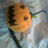 2012年的作品,那时候没有图纸没有教程,没有高清相机,只有旧床单和扣子,还把自己衣服上的小带子做藤,做了两个小时,研究了好久好久,缝上俩扣子放一边,舍友手痒,私自给它画了个嘴巴,于是乎,万圣节南瓜头就诞生了!舍友画完就后悔了。是谁干的?我保证不打死你!😁😁青春多美好!我很喜欢她送我的这惊喜!