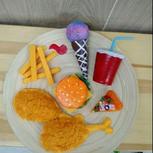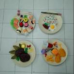 😘美食的诱惑😍🍝🍟🍰🍱🍲🍦🍡🍙🍘🍔 材料:软泡沫、丙烯、粘土、吸管、不织布、树叶、一次性方便筷、硬的泡沫板、手纸筒、纸藤纸。