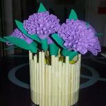 空糖果瓶子,用一次性筷子折断粘上去,然后海绵纸做了花花放进去