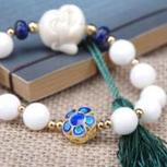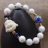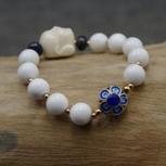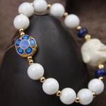 纯洁的砗磲中加一颗景泰蓝隔珠 衬托出砗磲的纯白无暇也释放出出景泰蓝与众不同的光彩
