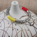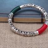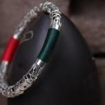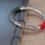 纯银镂空雕刻镯子,再缠一些线在上面,民族风是不是更浓了呢