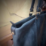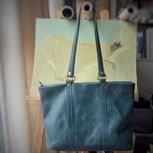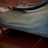 给某人做的tote包,非要牛仔布做内衬,还专门买了一台缝纫机缝布,意大利TEMPESTI單邊背臀 ,牛仔蓝,阴天的室内