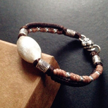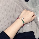 这个是我和二宝的姑姑想的,算是我们对三生绳的升级,主珠是景泰蓝彩珠,正好绳子用了珠子的三个颜色,红色主色呼应三生红绳,效果别具异域民族风,戴起来也好看,其实挺费劲的编这个,就是好像又只是自己喜欢的款式,所以自留了。