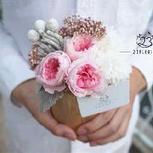 【贰叁花植】手工奥斯汀永生花摆件,原木花器。
