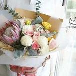 【贰叁花植】手绑一束帝王花束,拉菲草做点缀,和牛皮包装纸呼应,让粉嫩的花束不至于太过娇气,增添点文艺气息。
