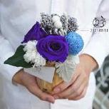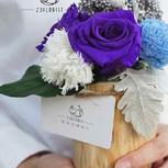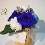 【贰叁花植】永生花摆件第二弹——魅夜。主花材是永生紫罗兰色玫瑰,天蓝色乒乓球菊,康乃馨,银叶菊,蓝色永生米花还有一片永生🍃。