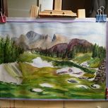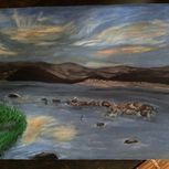 第一次画水粉画,宜宾李庄古镇同济广场的夕阳