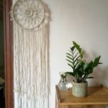 今天编织的作品,融入了自己的一些想法,铺梦网中心有只大鹏,还有个皇冠👑,有没有发现?就给她取名《为梦想加冕》,如何?