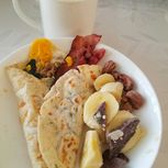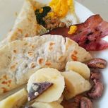 做了早餐美食,卷饼略煎,加了自己喜欢的馅料,味道更棒,鹰豆和杏仁打成豆浆。