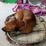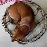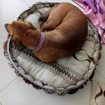 拿窗帘布给我家狗宝做的超级豪华狗窝。外面的好像没弄好。