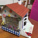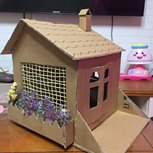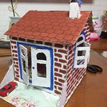 闺女幼儿园作业,用了一个酒箱子,我做了一天才做好。里面加一个小灯就完美了。时间来不及了。最后一图是内景,用的闺女玩具。